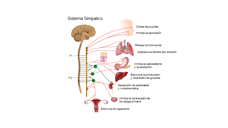 El sistema nervioso simpático es una de las tres ramas del sistema nervioso autónomo. El sistema nervioso autónomo, como su nombre indica, regula automáticamente los procesos fisiológicos involuntarios. Algunos ejemplos de procesos fisiológicos involuntarios son la frecuencia cardíaca, la presión arterial, la respiración y la digestión. Aunque una persona puede aumentar o disminuir la actividad normal de estos procesos, el sistema nervioso autónomo los activa y los mantiene. Por ejemplo, el corazón late, los pulmones respiran y el estómago hace la digestión sin que la persona ni siquiera piense en ello, pero sin embargo está a cargo de ellos.