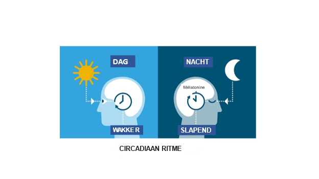 Naarmate het lichaam gedurende de dag meer aan de zon wordt blootgesteld, daalt de afscheiding van melatonine. En naarmate het ‘s nachts donkerder wordt, neemt de afscheiding van melatonine weer toe. Melatonine helpt de normale slaapcyclus van het lichaam in stand te houden, het zogenaamde circadiane ritme, die interne klok die we allemaal 24 uur per dag hebben lopen.