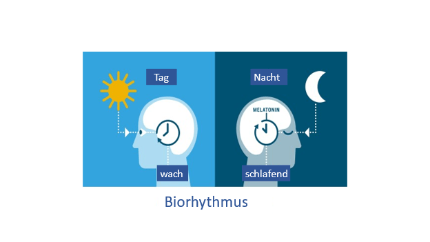 Je mehr der Körper tagsüber der Sonne ausgesetzt ist, desto geringer ist die Melatoninausschüttung. Und wenn es nachts dunkler wird, steigt die Melatoninausschüttung wieder an. Melatonin trägt dazu bei, den normalen Schlafzyklus des Körpers aufrechtzuerhalten, der als zirkadianer Rhythmus bekannt ist, die innere Uhr, die bei uns allen 24 Stunden am Tag läuft.