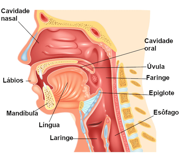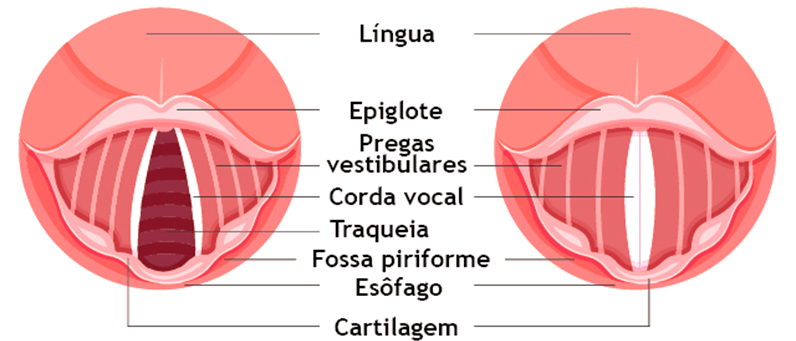 A laringe encontra-se na posição perfeita para ser protegida pela epiglote e receber a entrega de ar dos pulmões através da traqueia. Quando uma pessoa engole, a epiglote, uma aba flexível, fecha as vias respiratórias para que os alimentos e outras substâncias entrem no sistema digestivo através do esófago. A epiglote consiste numa cartilagem flexível que mantém a estrutura da epiglote, permitindo ao mesmo tempo a flexibilidade. As cordas vocais estão localizadas dentro da laringe.