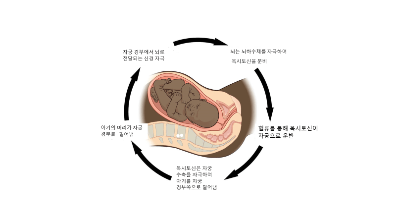 긍정적인 피드백 루프의 또 다른 예는 출산 중 노동입니다. 자궁 수축이 시작되면 뇌는 뇌하수체를 자극하여 옥시토신 호르몬을 분비합니다. 옥시토신은 혈류를 통해 자궁으로 운반되어 수축의 강도와 빈도를 증가시킵니다. 아기의 머리가 자궁 경부를 밀면 신경 자극이 자궁 경부에서 뇌로 전달됩니다. 뇌하수체는 더 많은 옥시토신을 방출하도록 자극됩니다. 이 긍정적인 피드백 주기는 아기가 태어나고 산후조리가 퇴원될 때까지 계속됩니다.