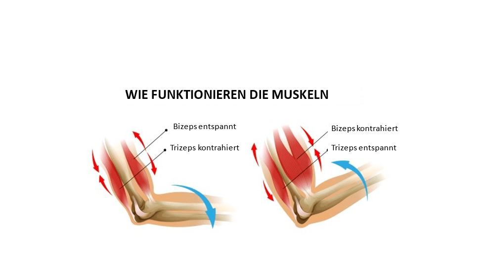 Wenn Mose seine Hände hochhielt, arbeiteten seine Bizepsmuskeln und seine Trizepsmuskeln waren entspannt. Als Moses seine Hände senkte, arbeiteten seine Trizepsmuskeln und seine Bizepsmuskeln waren entspannt.