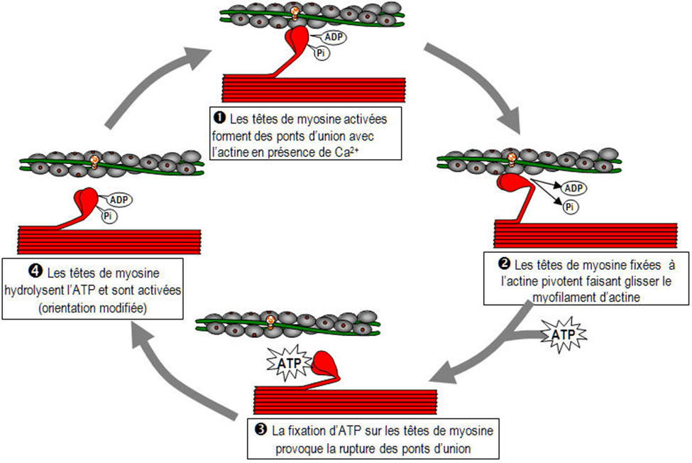 Deux fibres musculaires différentes interagissent lorsqu’un muscle travaille puis se détend. L’une des fibres, l’actine, est fine comparée à la fibre épaisse, la myosine. Pour qu’un muscle se contracte, la fibre de myosine doit s’attacher à la fibre d’actine et la tirer vers le centre. Cela demande de l’énergie ! L’ATP est la devise énergétique de votre corps. L’ATP est produite comme un sous-produit lorsque l’oxygène pénètre dans les cellules musculaires. L’ATP alimente la course motrice pour former un pont transversal reliant la fibre de myosine à la fibre d’actine. La fibre d’actine est alors tirée vers le milieu. Lorsque l’énergie ATP est épuisée, le pont transversal se rompt et le filament d’actine glisse à nouveau vers sa position initiale. Dieu a créé la molécule d’énergie ATP pour qu’elle puisse être facilement régénérée. Mais sans la présence d’oxygène, votre corps ne peut pas produire d’ATP.