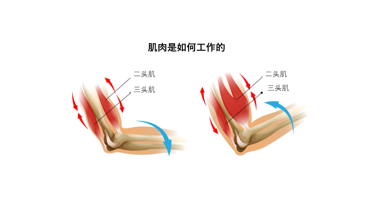 在工作,而二头肌在放松。
