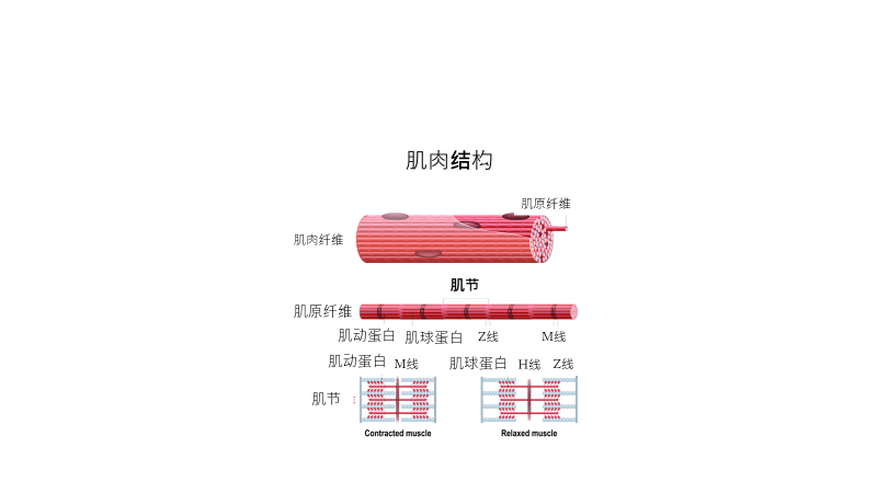 图,将肌肉的变化与肌动蛋白肌纤维在肌球蛋白纤维上的滑动和释放联系起来。现在你明