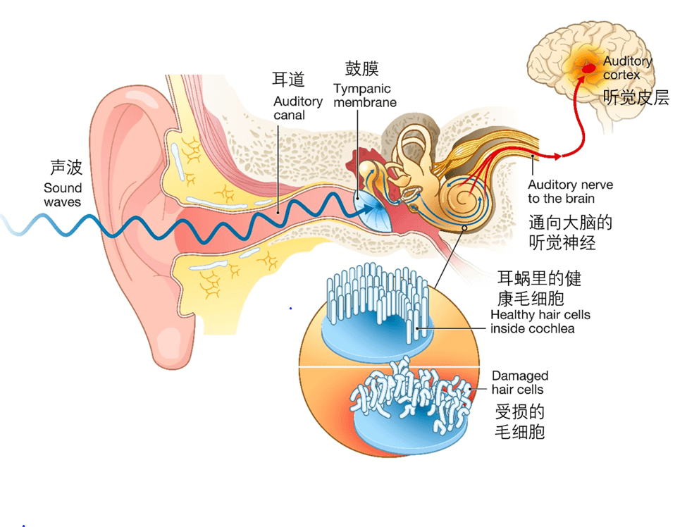 时,毛细胞就会受损,无法再发挥作用。由此造成的听力损失是不