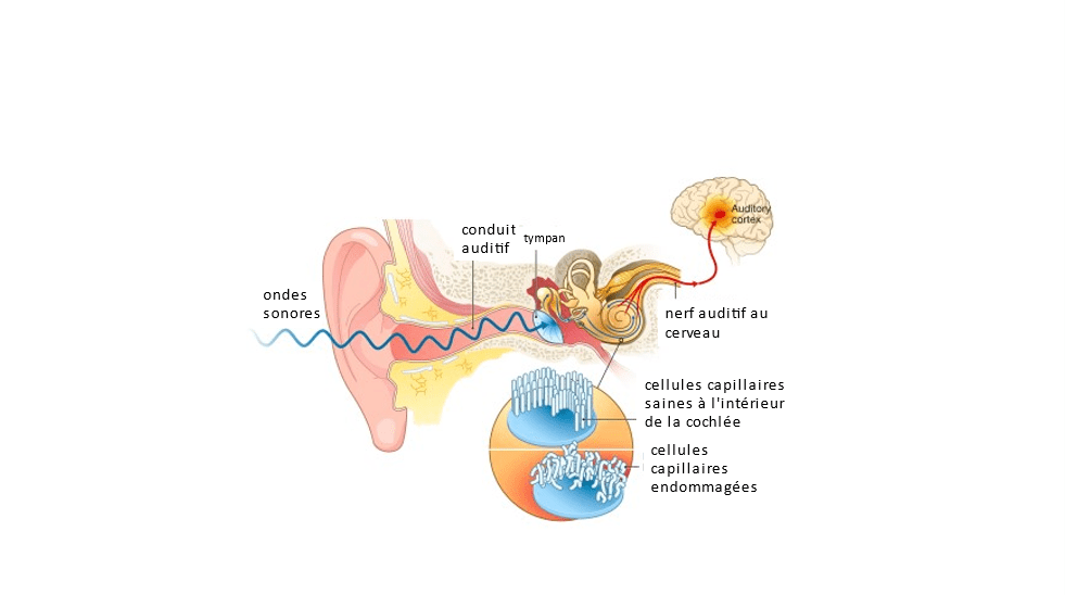 Une des raisons de la perte d’audition est la détérioration des cellules ciliées. Lorsque l’oreille est exposée à des bruits forts, les cellules ciliées sont endommagées et ne peuvent plus fonctionner. La perte auditive qui en résulte est irréversible car les cellules ciliées ne se régénèrent pas. Oui, il existe des appareils auditifs et des implants cochléaires, mais comme je le disais souvent à mes étudiants en anatomie, “prenez soin de votre corps. Dieu vous a fait spécial, tel que vous êtes!”