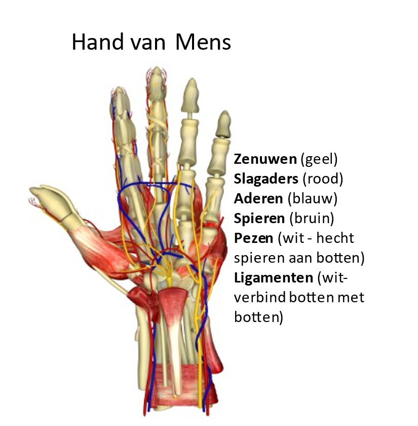 De menselijke hand, of het nu de rechter- of linkerhand is, is een krachtig bewijs van het verbazingwekkende detail van Gods schepping. De menselijke hand heeft 27 botten: 8 polsbotten, 5 handpalmbotten en 14 handwortelbeentjes.