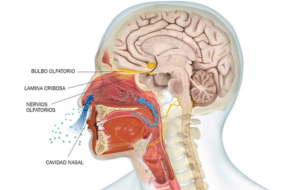 Quando você sente um odor, na verdade está respirando moléculas minúsculas. Essas moléculas entram no nariz pelas narinas e chegam à cavidade nasal. Esta parte do nariz é revestida por pequenos pelos que limpam e filtram o ar que entra. Também é revestido por uma membrana mucosa que mantém o nariz húmido.