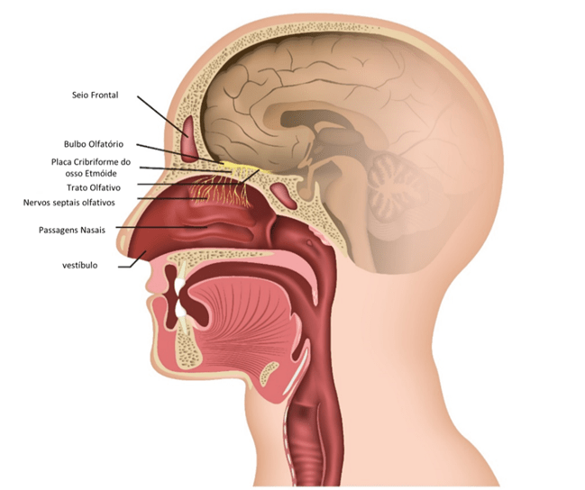 O ar filtrado atinge células nervosas especializadas, chamadas neurônios sensoriais olfativos, localizadas na parte superior do nariz. Existem alguns milhões dessas células dentro do seu nariz. Esses neurônios sensoriais detectam moléculas de odor e retransmitem sinais através do trato olfativo até o bulbo olfatório, onde ocorre o processamento inicial do odor. O bulbo olfatório é uma estrutura pareada encontrada no lado inferior de ambos os hemisférios cerebrais, próximo ao lobo frontal.