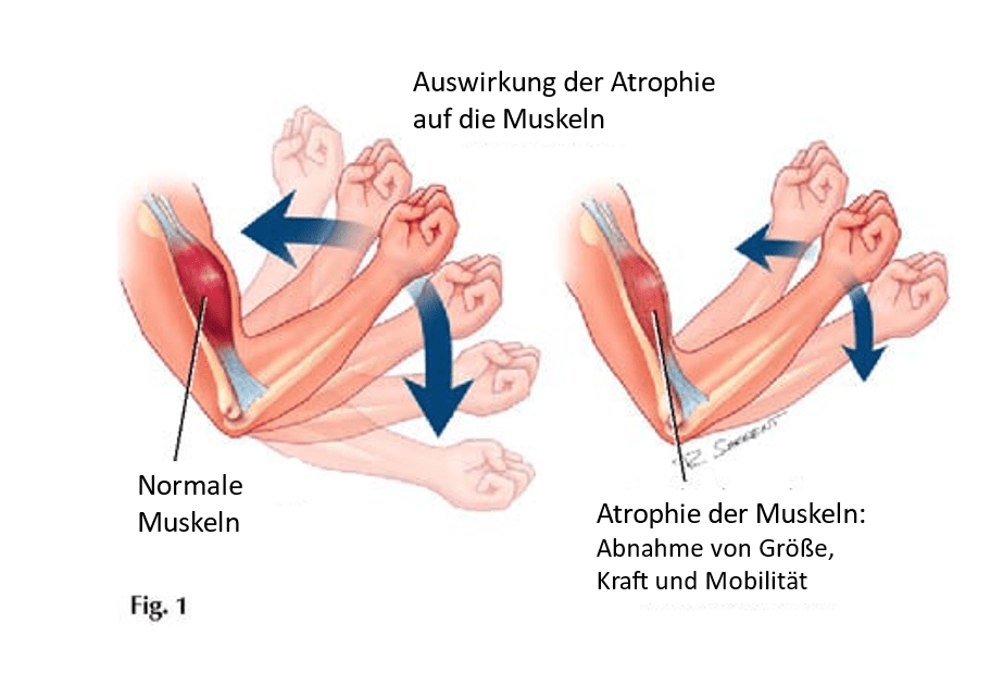 Muskelatrophie wird dadurch verursacht, dass die Muskeln nicht ausreichend beansprucht werden. Die gute Nachricht ist, dass diese Art von Atrophie oft durch Training und bessere Ernährung rückgängig gemacht werden kann. Muskeln bestehen aus Eiweiß, und eine ausreichende Eiweißzufuhr nach dem Training verringert den Abbau von Muskelprotein und fördert das Wachstum neuer Muskeln.