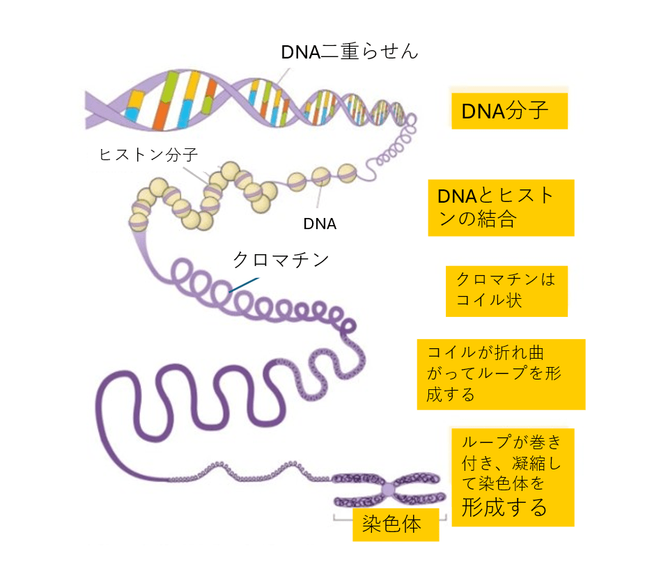 神が私たちを創造したとき、神は常に構造と機能を一致させた。 何も計画されていなかったり、混沌としていたりはしなかった。この疑問に対する答えは、DNAにはヒストンと呼ばれるタンパク質が含まれているという事実にある。DNAはこれらのタンパク質に、糸に玉をつけるように巻きつけられ、クロマチンを形成する。クロマチンのコイルは折りたたまれてループを形成し、それが互いに絡み合って染色体を形成する。
