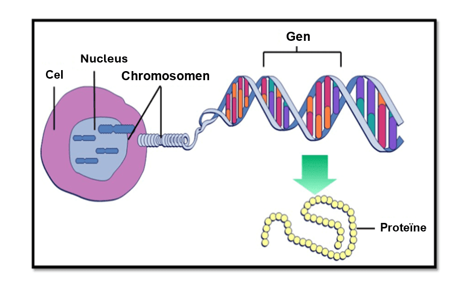 Elk van de 23 chromosomen heeft specifieke DNA-gebieden die genen worden genoemd. Genen coderen voor cellen om specifieke eiwitten te produceren. De cellen in de alvleesklier produceren bijvoorbeeld het hormoon insuline. De cellen in huid en haar produceren het eiwit melanine dat de huid- en haarkleur bepaalt. Om de code in de cel tot expressie te laten komen, moet het DNA van dat gen zich ontrollen tot chromatine. Als het eiwit eenmaal is geproduceerd, rolt het chromatine van dat gen zich weer op in zijn gecondenseerde vorm op het chromosoom.
