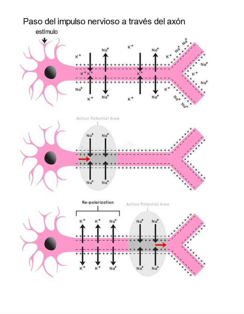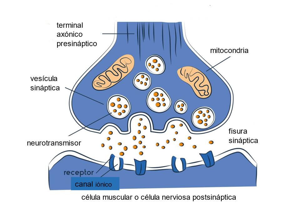 Una vez que el impulso nervioso llega a la terminal presináptica del axón, la señal eléctrica se convierte en una señal química. Las vesículas sinápticas descargan neurotransmisores en la hendidura sináptica, que transmiten la señal a otra neurona o a una célula muscular.