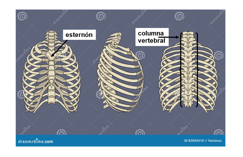 En la foto de arriba, se han recortado las costillas para ver mejor la posición del corazón. Tres estructuras importantes del sistema óseo del cuerpo protegen el corazón: la columna vertebral, el esternón y los siete primeros pares de costillas. Estas costillas se clasifican como costillas verdaderas porque se articulan con la columna vertebral y el esternón.