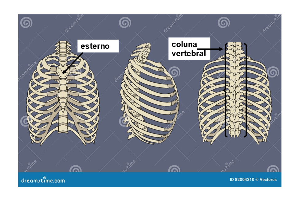 Na foto acima, as costelas foram cortadas para melhor visualização da posição do coração. Três estruturas importantes do sistema esquelético do seu corpo protegem o seu coração: a coluna vertebral, o esterno e os primeiros sete pares de costelas. Estas costelas são classificadas como costelas verdadeiras porque se articulam com a coluna vertebral e o esterno.