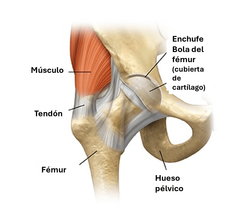 La articulación de la cadera se forma donde la cabeza redondeada del hueso del muslo (fémur) se une al hueso de la pelvis. La articulación está recubierta de tejido y recibe la fuerza de grandes músculos. Cuando todas las partes enumeradas a continuación están sanas, la cadera debe moverse con facilidad.
