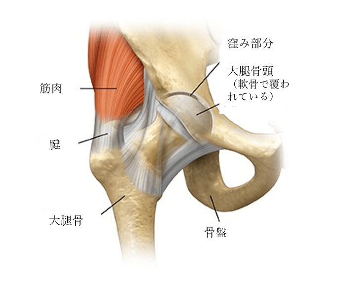 股関節は、大腿骨の丸いあたまの部分(大腿骨頭)が骨盤と結合する部分である。 関節は組織で覆われ、大きな筋肉によって動かされる。 以下のすべての部位が健康であれば、股関節は容易に動く。