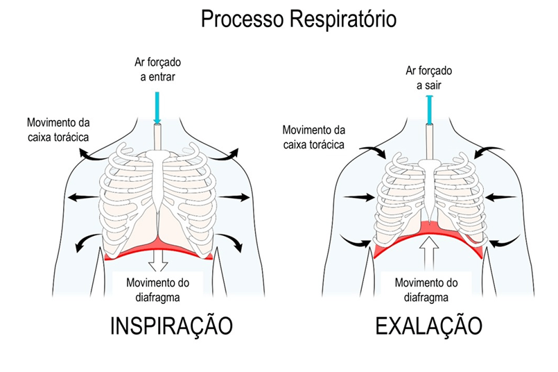 A respiração é controlada voluntariamente pelos músculos do peito e do abdómen. O diafragma é o principal músculo utilizado na respiração. É um músculo em forma de cúpula localizado abaixo dos pulmões, separando a cavidade torácica da cavidade abdominal. Quando inspira ou respira, o seu diafragma contrai-se e move-se para baixo. Isto aumenta o espaço na cavidade torácica, permitindo que o ar flua para o interior, expandindo os pulmões. Quando expira, o diafragma relaxa e volta ao seu formato de cúpula. À medida que o ar sai dos pulmões, estes esvaziam-se por si, tal como um balão elástico se esvazia se deixado exposto ao ar.