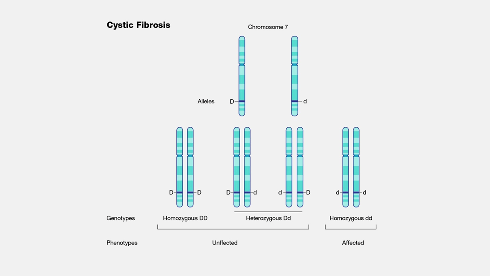 The couple’s second child was a son. He received a copy of the CF gene on both of his chromosomes 7; therefore, he was affected by cystic fibrosis. He did not marry.