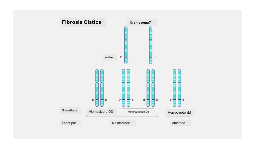 La fibrosis cística es una enfermedad autosómica recesiva. El gen de la fibrosis cística se localiza en el cromosoma 7. Si una persona tiene el gen defectuoso en ambos cromosomas 7, padece la enfermedad. Si una persona tiene el gen defectuoso en uno de sus cromosomas 7, no está afectada. Son portadores de la enfermedad y pueden transmitirla a la siguiente generación.