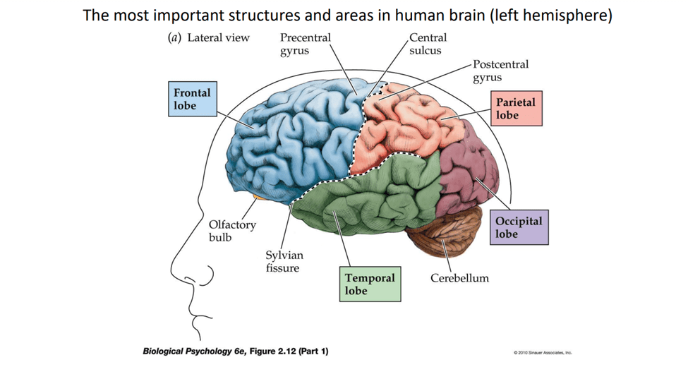 • Broca’s area: Located in the left frontal lobe, Broca’s area is essential for language production. It translates thoughts into grammatically correct and coherent sentences, both spoken and written.