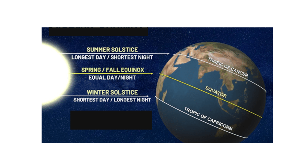 - Spring and Fall Equinox – the Sun is shining directly on the Earth’s equator.